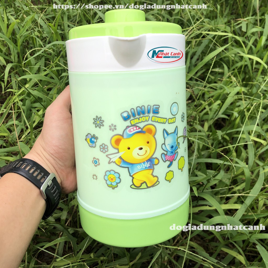 Bình giữ nhiệt bằng nhựa giữ nhiệt rất lâu, bình giữ nhiệt giữ nước lạnh cho mùa hè, giữ nước ấm cho mùa đông.Bình có dung tích 1200ml và 1800ml thích hợp cho việc hãm trà xanh, nước lá vối... Còn gì tuyệt vời hơn khi đi trời hè oi ả về nhà có cốc nước vối lạnh thì tuyệt vời. Mùa đông lạnh giá làm cốc nước ấm còn gì bằng. Bình được làm bằng nguyên liệu nhựa pp cao cấp, đảm bảo vệ sinh an toàn thực phẩm, kiểu dáng đẹp mắt rất phù hợp với mỗi gia đình chúng ta.