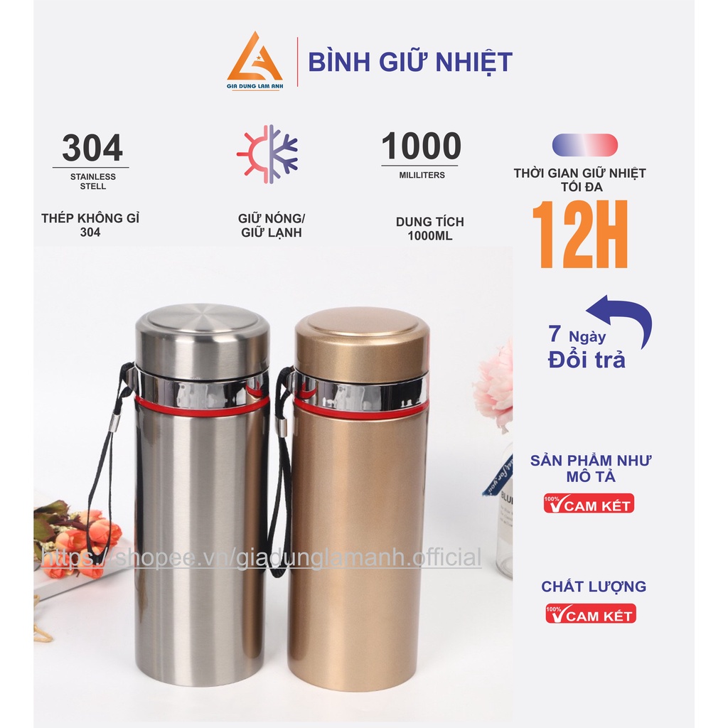 Bình giữ nhiệt. Bình đựng nước giữ nhiệt inox 304 Dung Tích 1000ml