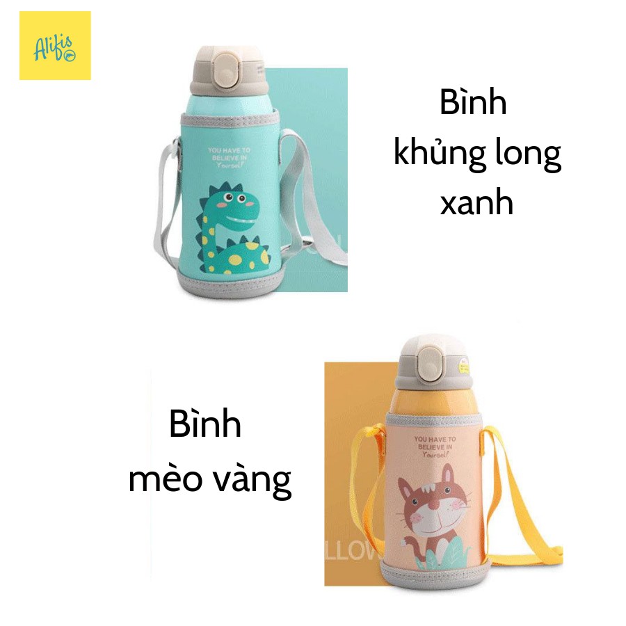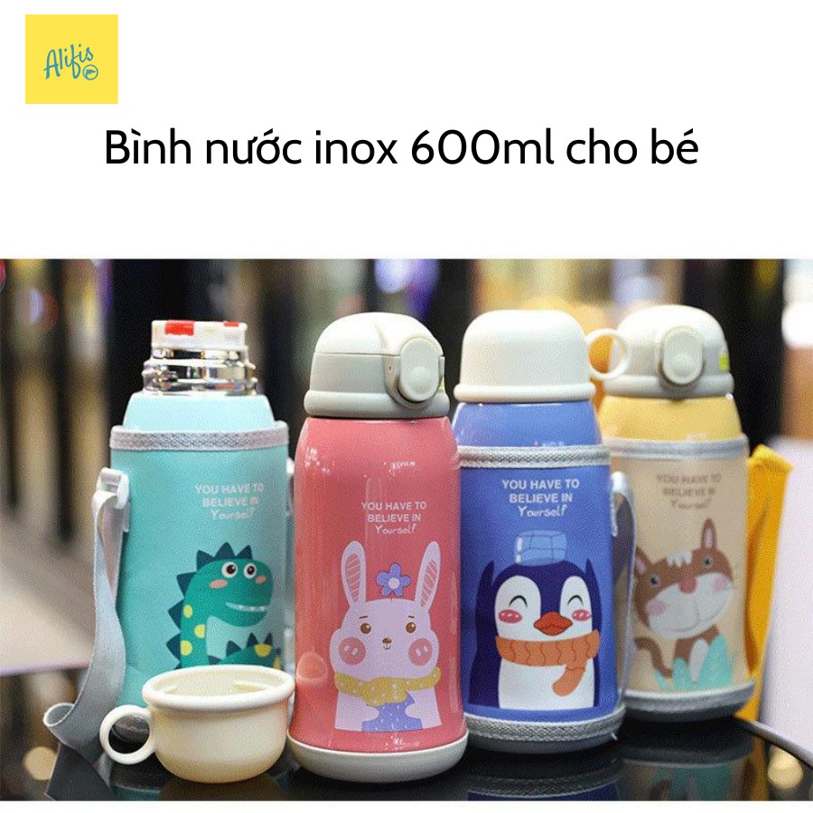 Nhà cửa & Đời sống > Bộ đồ bàn ăn > Bình nước & phụ kiện || Bình giữ nhiệt, bình giữ nhiệt cho bé inox 304 họa tiết hình thú ngộ nghĩnh 600ml - có 2 nắp tiện dụngCòn hàng