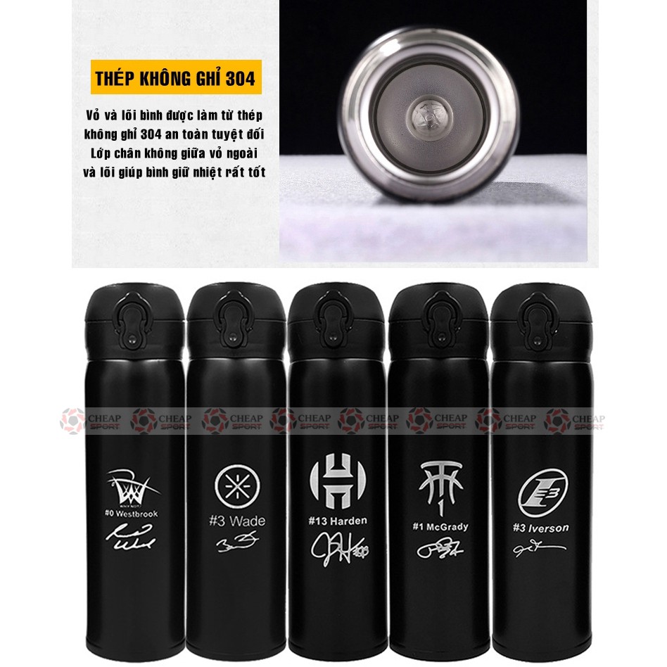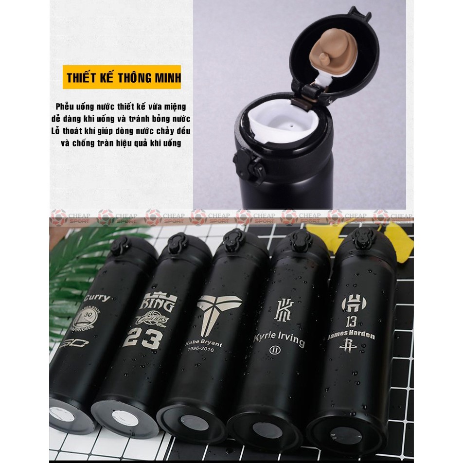 Bình Giữ Nhiệt Bóng Rổ 1.0 Kobe James Curry Jordan Harden Chất Liệu Inox 304 An Toàn Giữ Nhiệt Nóng Lạnh Cực Tốt