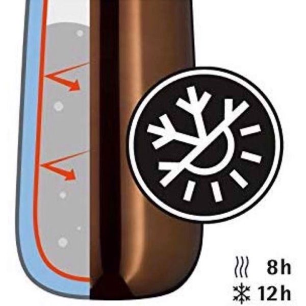 - Chiếc bình có thể giữ được nhiệt độ nóng của nước lên tới 8h và nhiệt độ lạnh thì dài hơn với 12h liên tục thoải mái để bạn sử dụng cả một ngày dài.