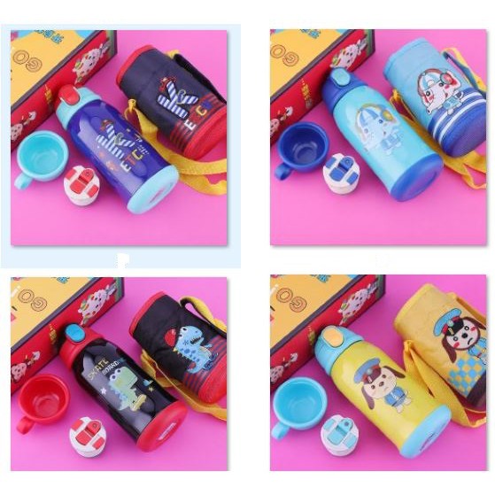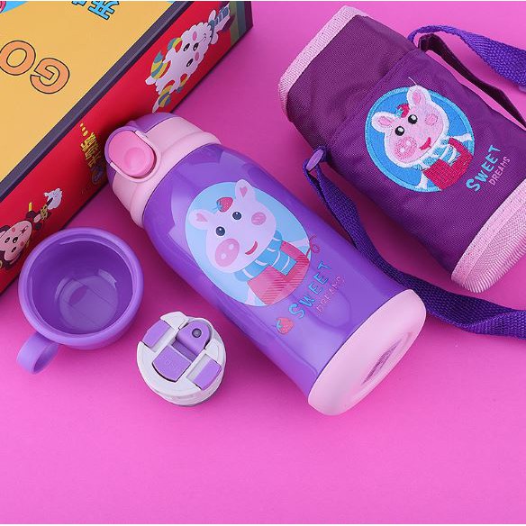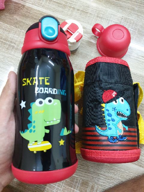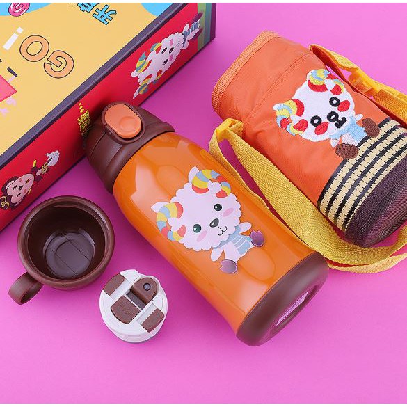 Thiết kế vô cùng nổi bật, với bao vải dù giữ ấm có dây đeo thêu hình, bình màu sắc bắt mắt, họa tiết đáng yêu