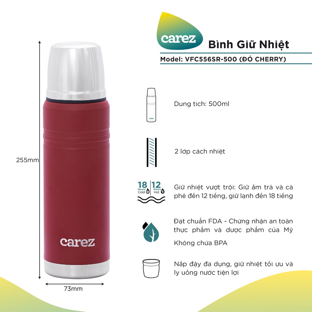 Giới thiệu Bình giữ nhiệt Carez Back to Basic 500ML VFC556SR-500 - Màu đỏ