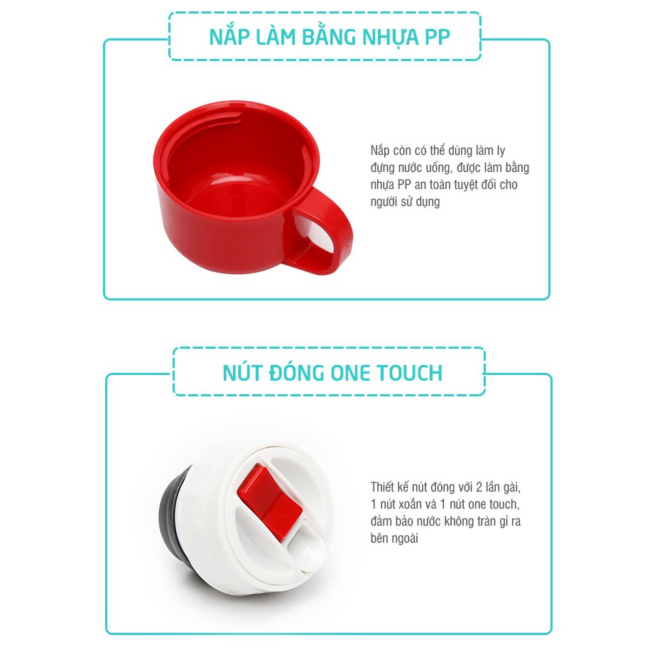 Sản phẩm được gia công từ inox 304 và nhựa PP cao cấp, độ bền cao, không chứa BPA, chịu lực tốt, trọng lượng nhẹ và an toàn cho sức khỏe.