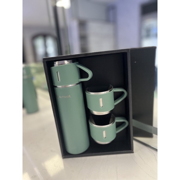 - Đóng gói: 1 bộ/hộp, bao gồm 1 bình giữ nhiệt và 2 cốc.
