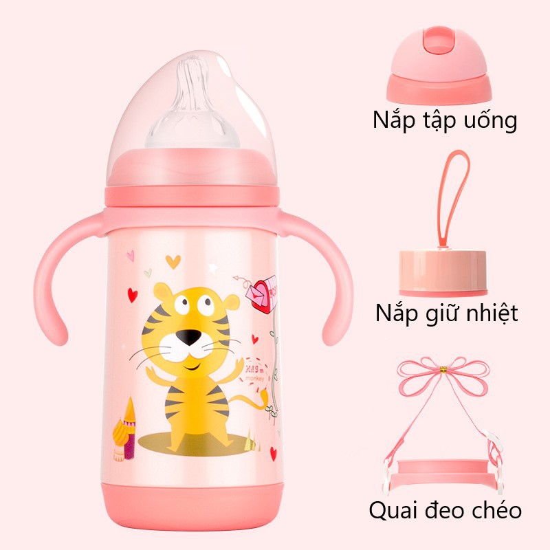 - Dung tích bình sữa giữ nhiệt 300ml ( tặng kèm 1 núm ti nano+ bộ cọ 5 món )