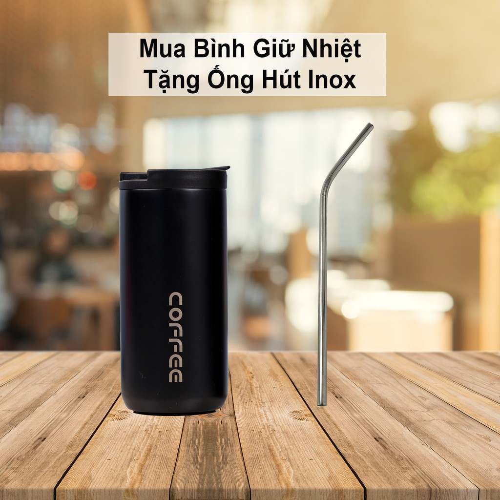 Bình Giữ Nhiệt Coffee Ly Giữ Nhiệt Cafe Thép Không Gỉ 350ml/500ml Tặng Ống Hút Inox Bình Đựng Nước Giữ Nhiệt Inox304