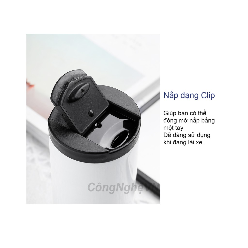 ✅ Nắp dạng clip giúp bạn có thể đóng mở dễ dàng chỉ bằng một tay, vô cùng tiện lợi để uống nước trong khi đang lái xe. Gioăng silicone bên trong nắp có thể tháo rời, dễ dàng làm sạch.