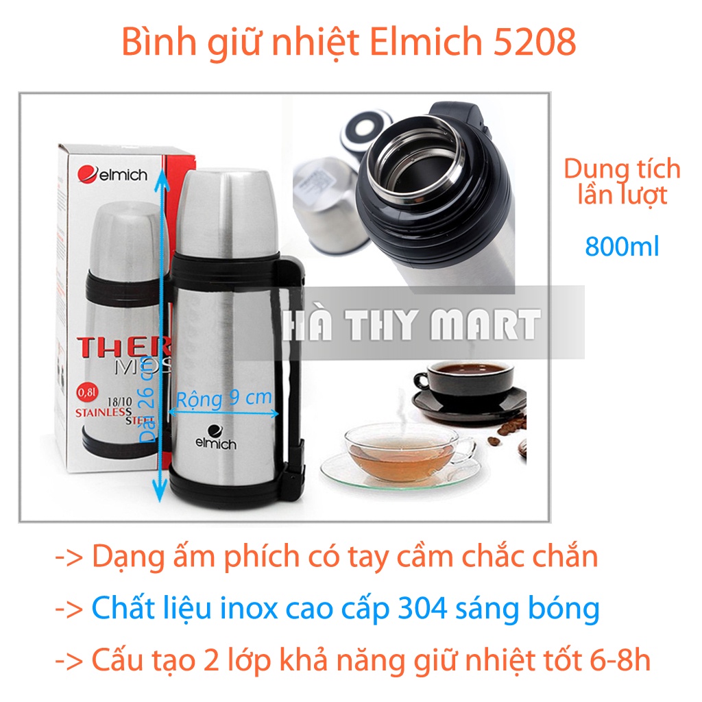 ☑ Bình giữ nhiệt elmich được sản xuất theo nguyên tắc kín hơi, cấu tạo bình bằng hai lớp inox trong, ngoài và ở giữa được hút chân không. Do ở môi trường chân không, không truyền nhiệt và lớp tráng phủ trong lòng bình phản xạ nhiệt vào bên trong khiến cho nước bên trong giữ được nhiệt độ lâu.