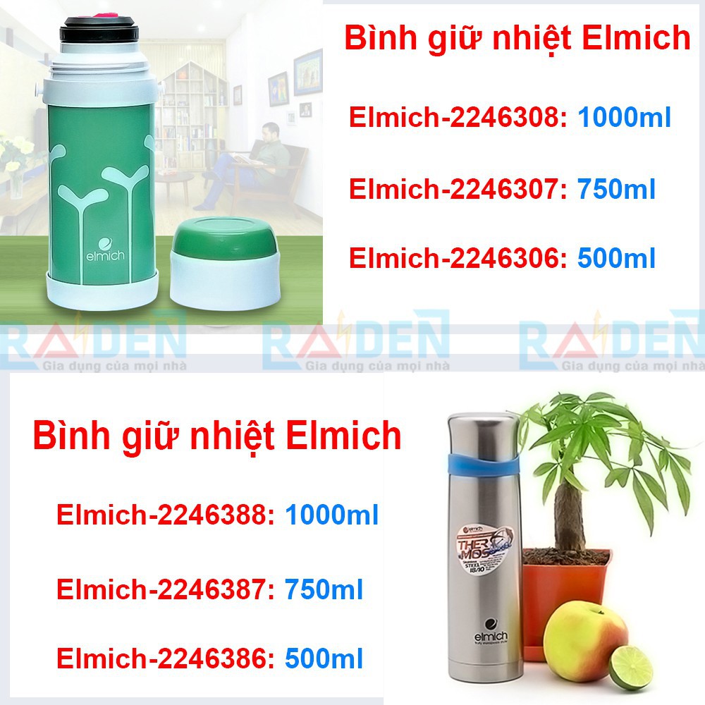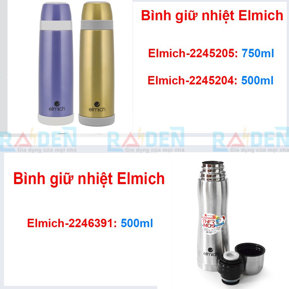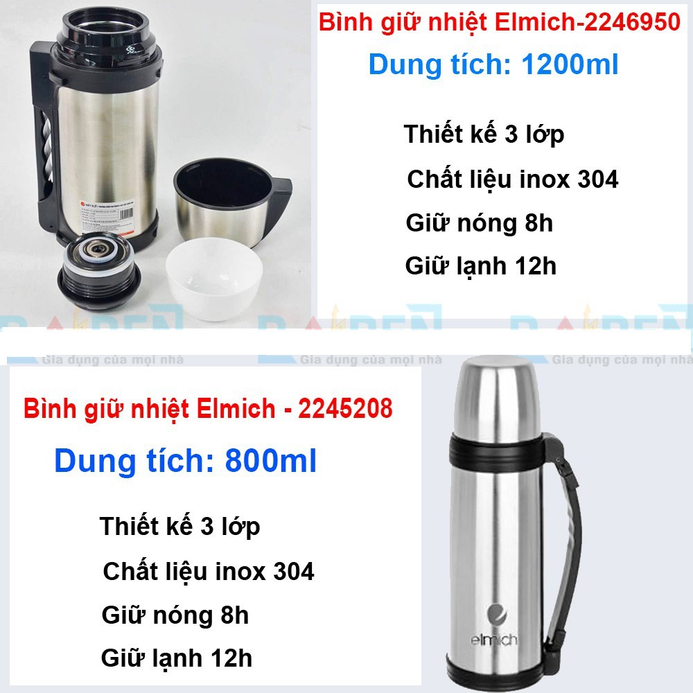 Bình giữ nhiệt Elmich inox 304 thiết kế 3 lớp dung tích 500ml, 750ml, 800ml, 1000ml, 1200ml sản xuất tại cộng hòa séc