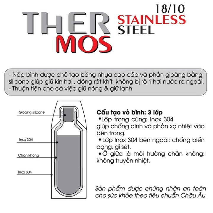 ☑ Ở giữa là môi trường chân không: Không truyền nhiệt qua lại giúp giữ nhiệt tối đa thuận tiện cho cả việc giữ nóng và giữ lạnh