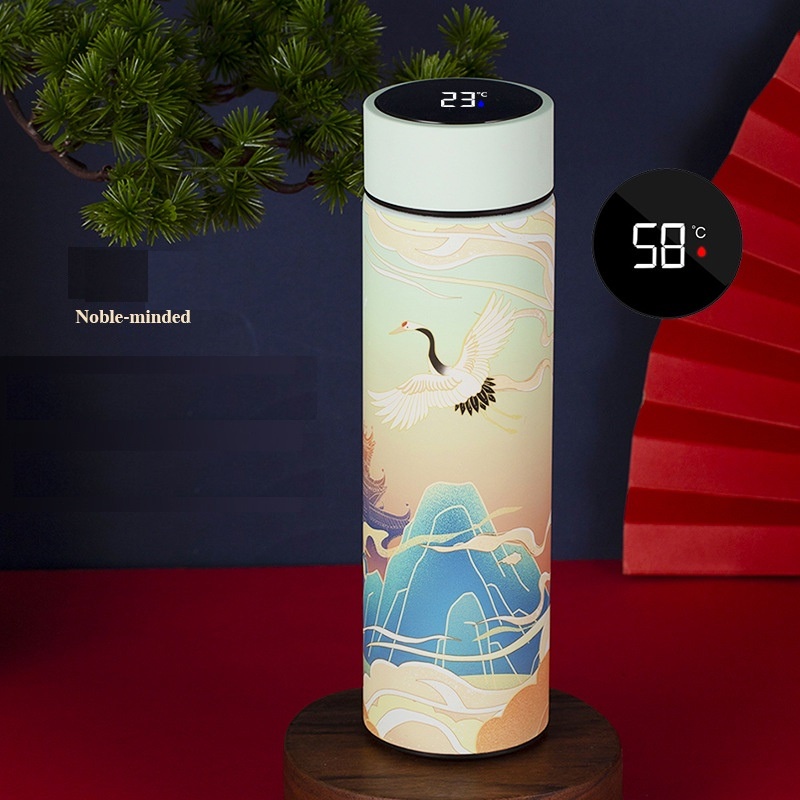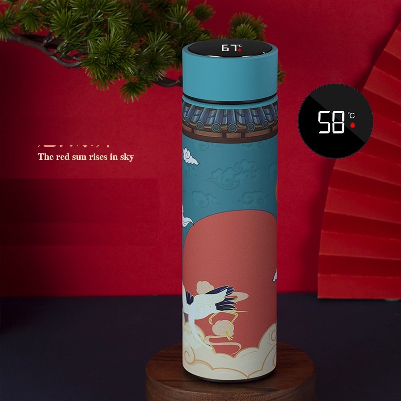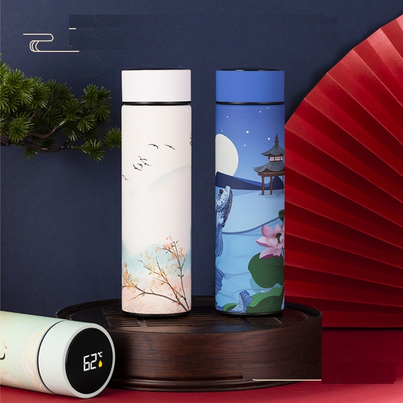 Nhà cửa & Đời sống > Dụng cụ nhà bếp > Dụng cụ pha trà, cà phê || Bình giữ nhiệt hiển thị nhiệt độ 3 lớp lõi inox 304 hoa văn cung đình dung tích 500mlCòn hàng
