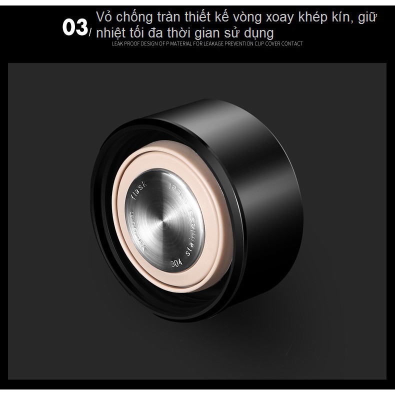• Bình giữ nhiệt lõi chân không kép có các lớp bề mặt và nắp ngăn được làm từ chất liệu thép không gỉ 304SUS siêu nhẹ và mang đến sự an toàn tuyệt đối cho sức khỏe của người sử dụng