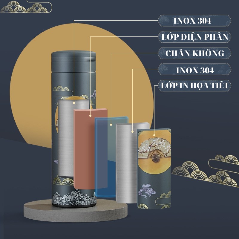 Giới thiệu Bình giữ nhiệt hiển thị nhiệt độ 4 lớp lõi inox 304 hoa văn cung đình TiLoKi TGN 05 dung tích 500ml