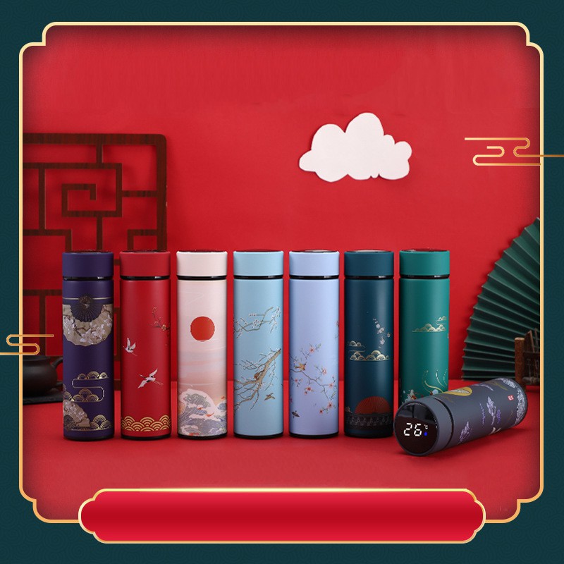Nhà cửa & Đời sống > Bộ đồ bàn ăn > Bình nước & phụ kiện || Bình giữ nhiệt hiển thị nhiệt độ 4 lớp lõi inox 304 hoa văn cung đình TiLoKi TGN 05 dung tích 500mlCòn hàng