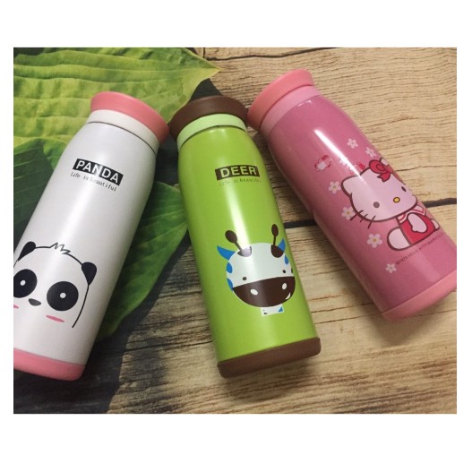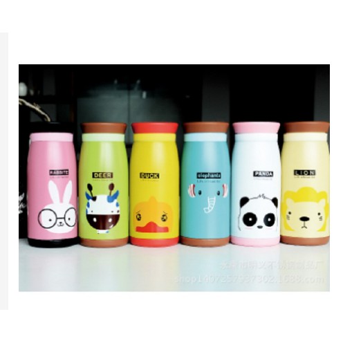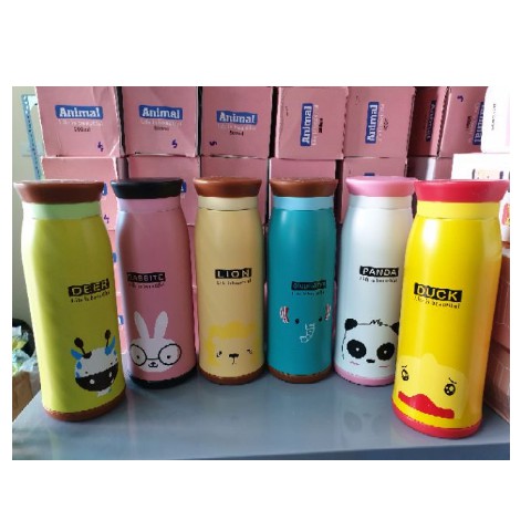 ❸ Bình giữ nhiệt có nhiều kiểu in họa tiết hình thú dễ thương như con voi, con bò, con thỏ, con vịt, con hỗ và panda, rất thích hợp làm quà tặng.