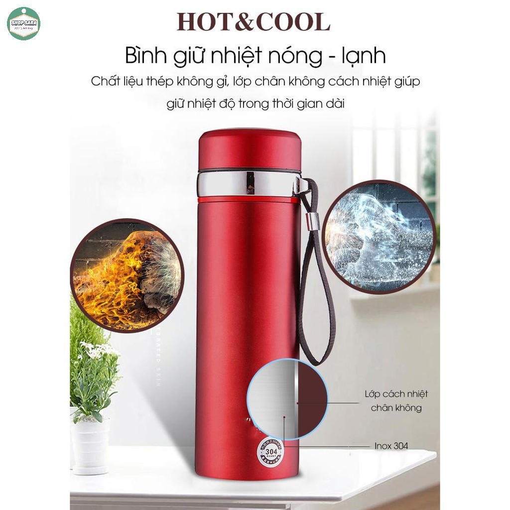 - Bình được cấu tạo với 2 lớp Inox cao cấp 304, giữa là lớp cách nhiệt chân không tăng tính giữ nhiệt của bình.
