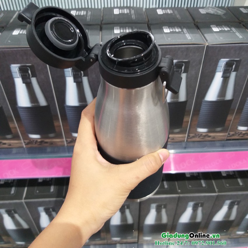 - Nắp bình có 3 lớp, cho khả năng giữ nhiệt cao. Bên cạnh đó, bề mặt phủ cao su, tạo độ bám tay, giúp bạn dễ dàng vặn mở nắp.