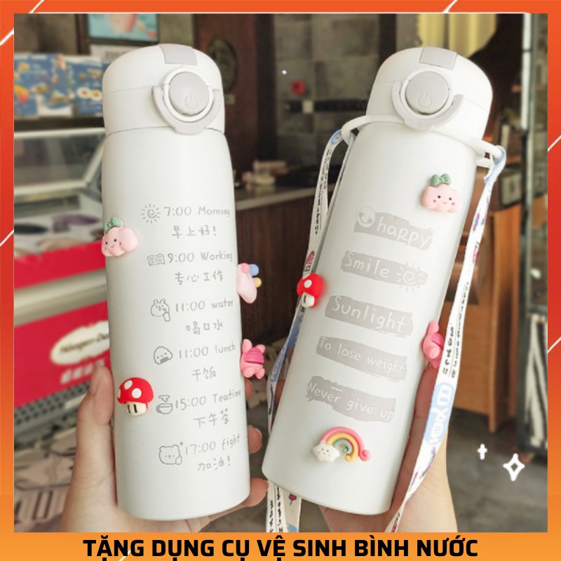 Bình giữ nhiệt INOX 304 phong cách hàn quốc , bình nước có ống hút dung tích 500ml có dây đeoCAM KẾT