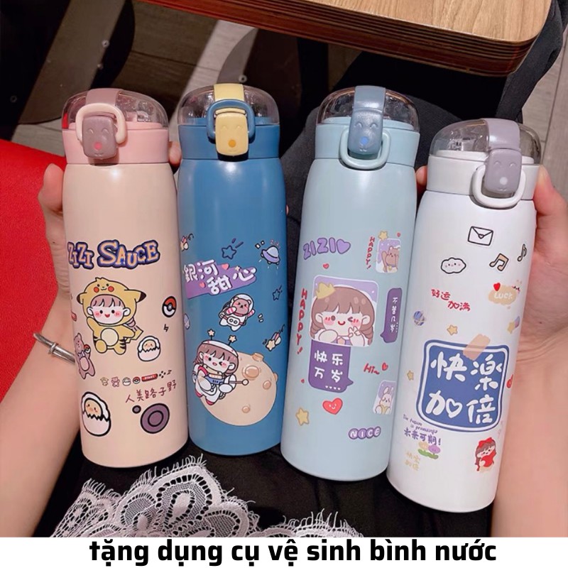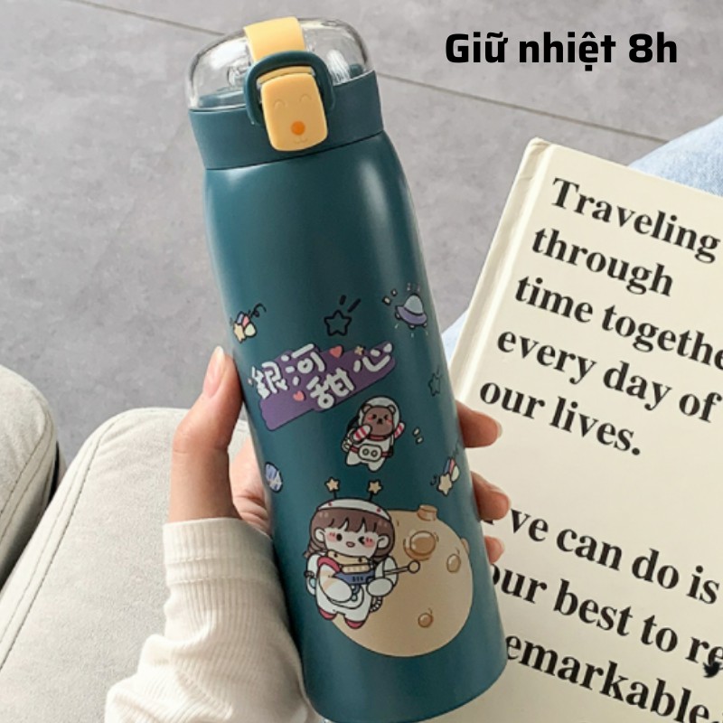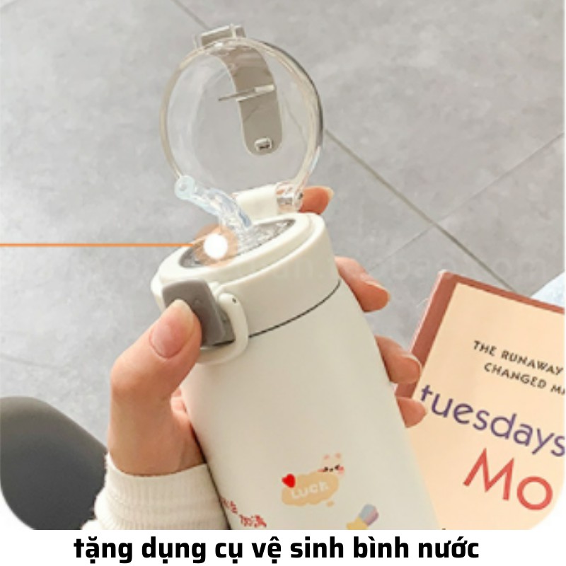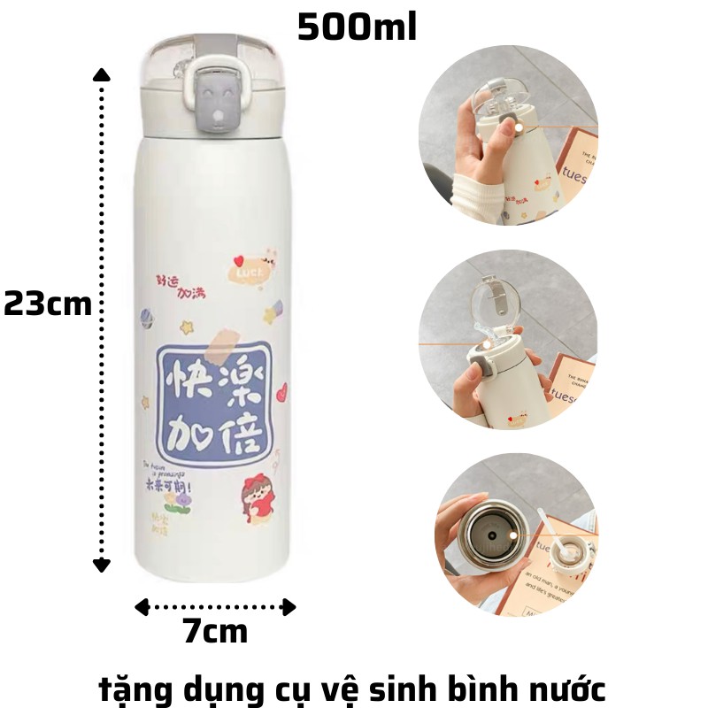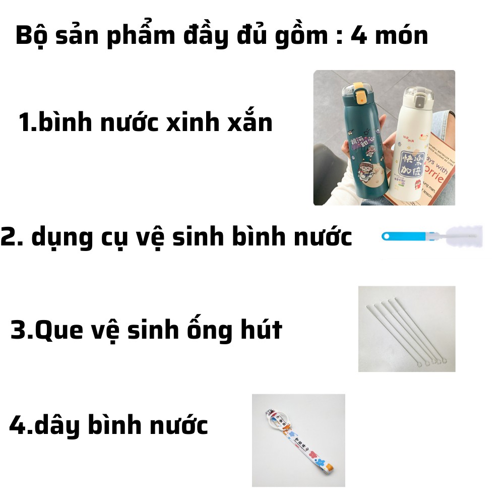 Bình giữ nhiệt INOX 304 phong cách hàn quốc , bình nước có ống hút 500ml có dâyCAM KẾT