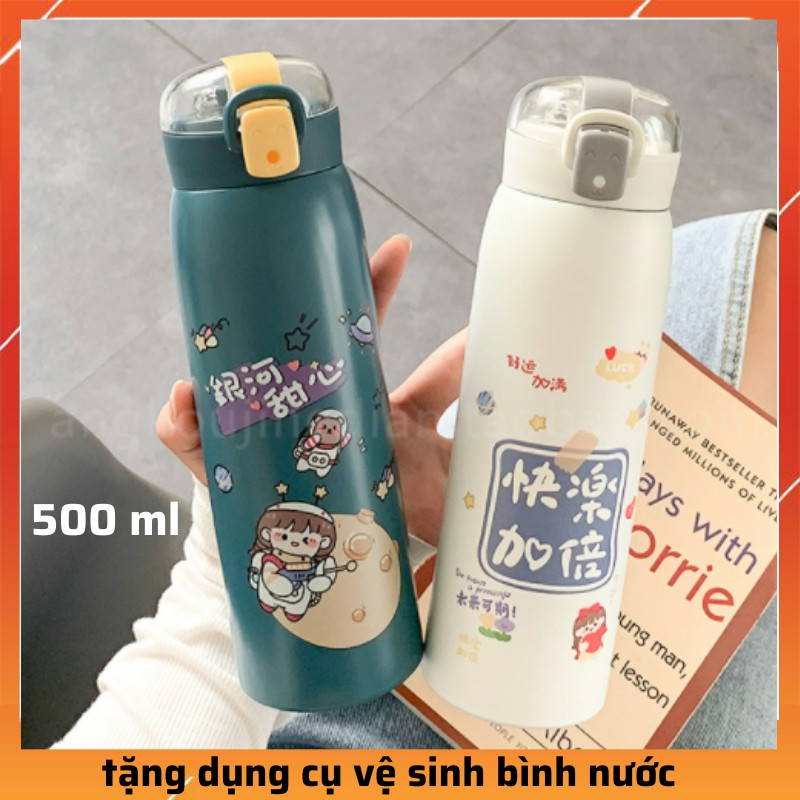 Nhà cửa & Đời sống > Bộ đồ bàn ăn > Bình nước & phụ kiện || Bình giữ nhiệt INOX 304 phong cách hàn quốc , bình nước có ống hút 500ml có dâyCòn hàng