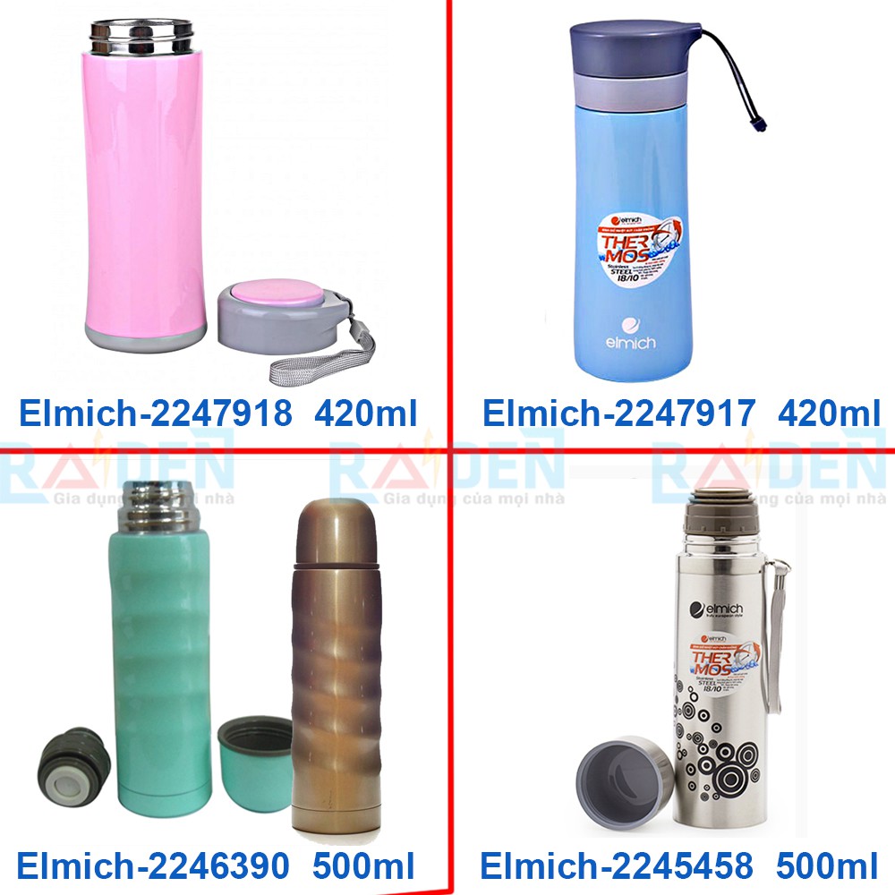 Nhà cửa & Đời sống > Bộ đồ bàn ăn > Bình nước & phụ kiện || Bình giữ nhiệt inox 304 thiết kế 3 lớp thương hiệu Elmich 400ml, 420ml, 480ml, 500mlCòn hàng