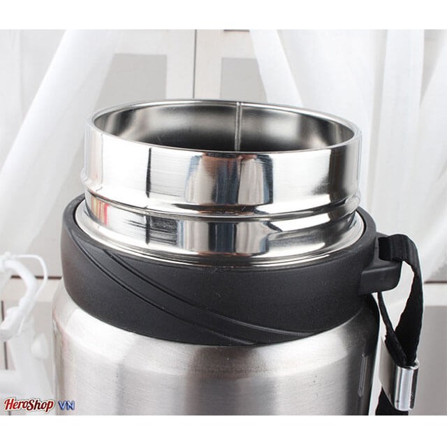 - Chất liệu bình được làm từ inox, do đó cho độ an toàn và độ bền cao. Đi kèm dây treo tiện lợi . Nắp bình rộng để được những viên đá to giúp giữ nhiệt lâu hơn 8h .