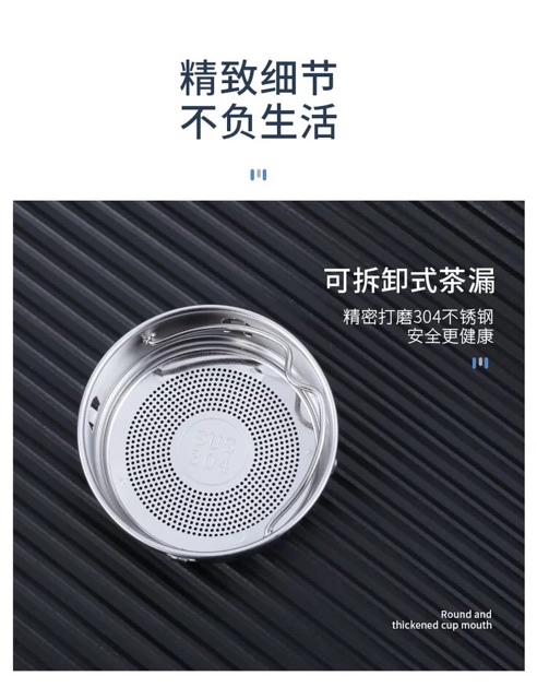- Cấu tạo 2 lớp, lớp trong là inox SUS 304 không dính, không dính trà, dễ lau chùi, chống ăn mòn, chịu nhiệt độ cao, cách nhiệt mạnh mẽ, an toàn cho sức khỏe