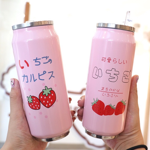 Nhà cửa & Đời sống > Bộ đồ bàn ăn > Bình nước & phụ kiện || Bình giữ nhiệt inox - Bình Uống Nước Giữ Nhiệt Hồng Phấn Hình Dâu Có Sức Nhiệt Lớn Dung Tích 500ml - MiuMiu MartCòn hàng