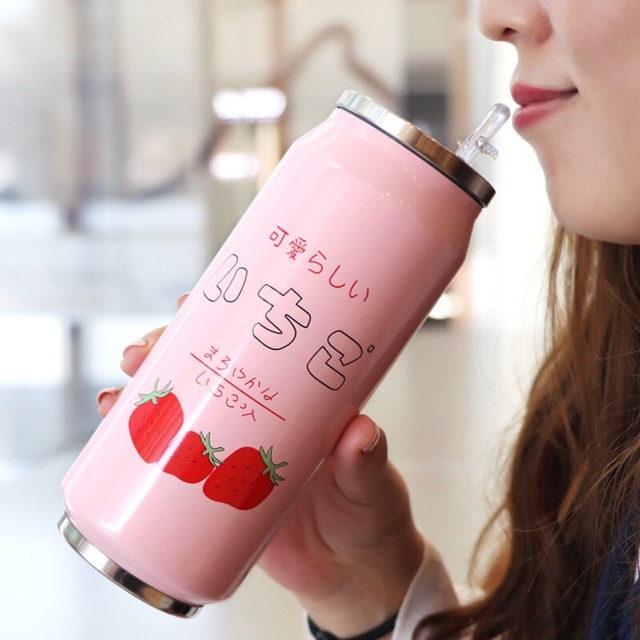 Bình giữ nhiệt inox - Bình Uống Nước Giữ Nhiệt Hồng Phấn Hình Dâu Có Sức Nhiệt Lớn Dung Tích 500ml - MiuMiu Mart