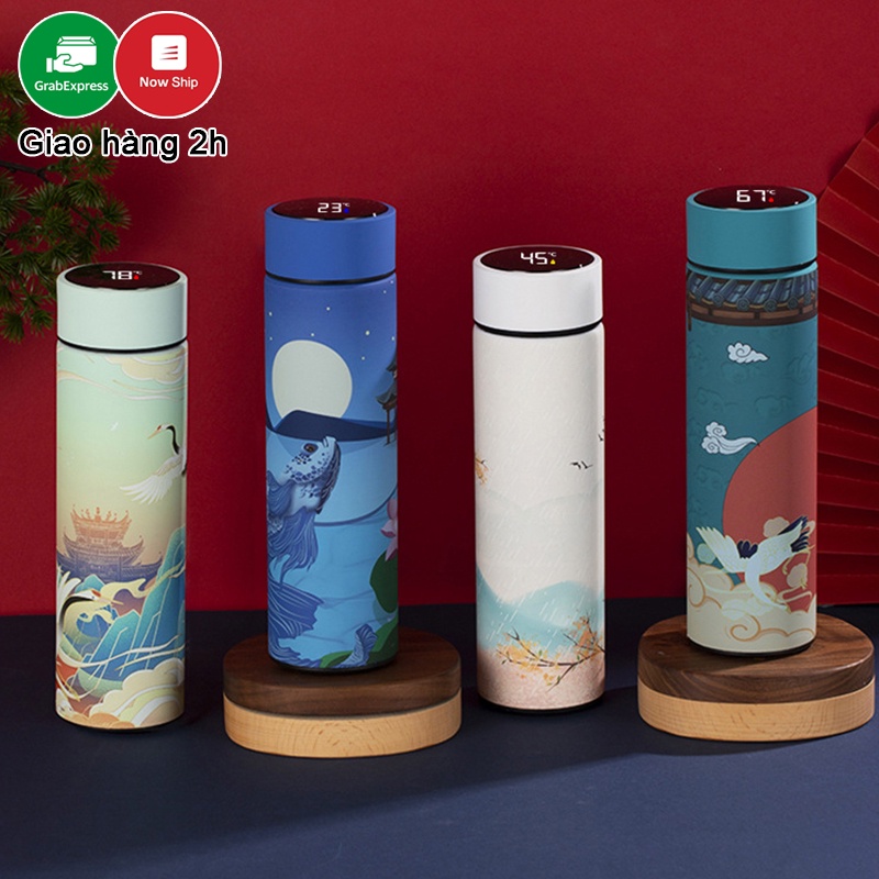 ⛔ Bình giữ nhiệt in hình tranh cổ phong cách tranh về hoa lá, chim muông và phong cảnh*Điểm đặc biệt của Bình giữ nhiệt là phần nắp là Nhiệt kế màn hình Led, bạn chỉ cần chạm vào Nắp, màn hình sẽ hiển thị nhiệt độ thực tế của Bình.