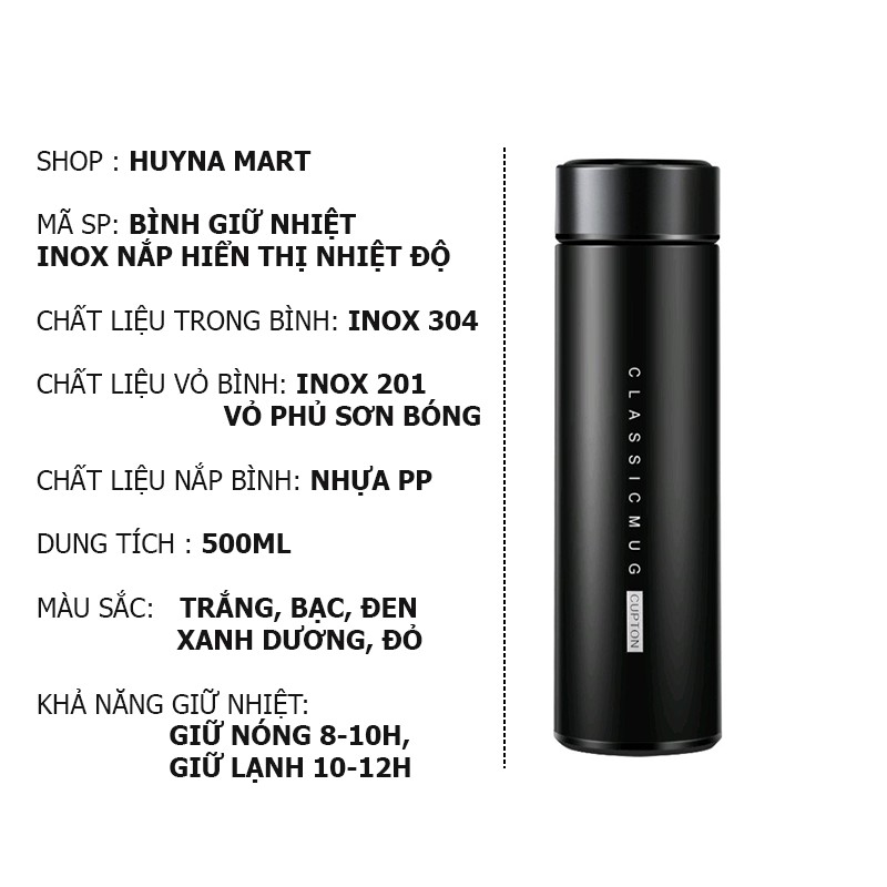 Dung tích của bình giữ nhiệt hiển thị nhiệt độ: 500ml