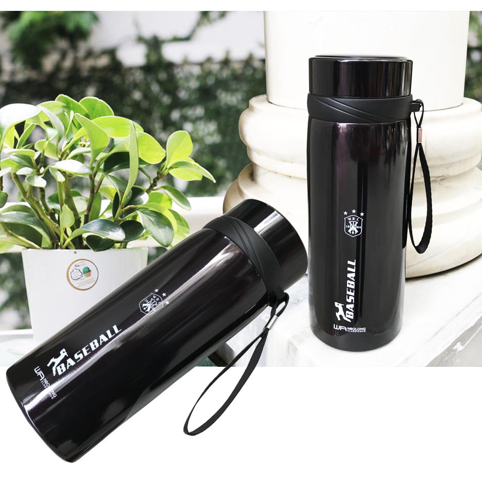 Bình làm bằng chất liệu inox SUS304 cao cấp, sáng bóng nổi bật, có dây xách tiện lợi.