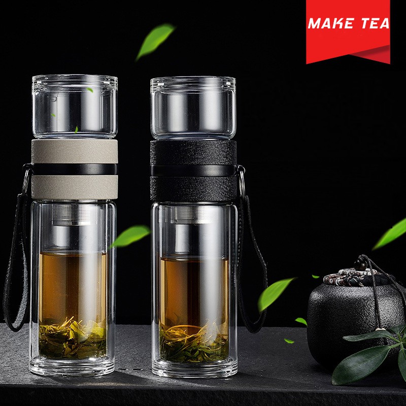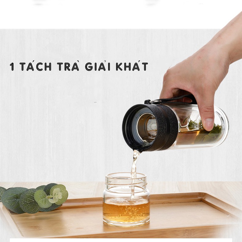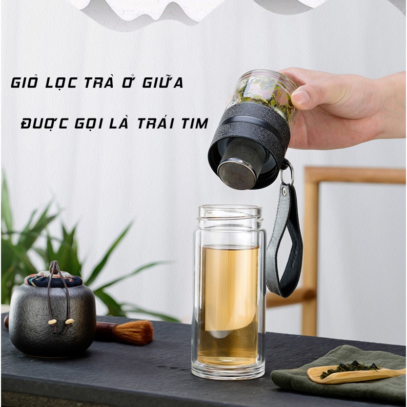 Bình giữ nhiệt kèm bộ lọc pha trà làm bằng thủy tinh 2 lớp thủy tinh, có kèm ly cao cấp