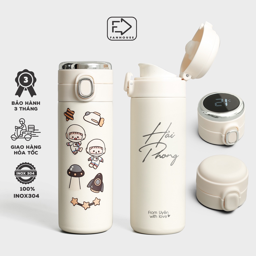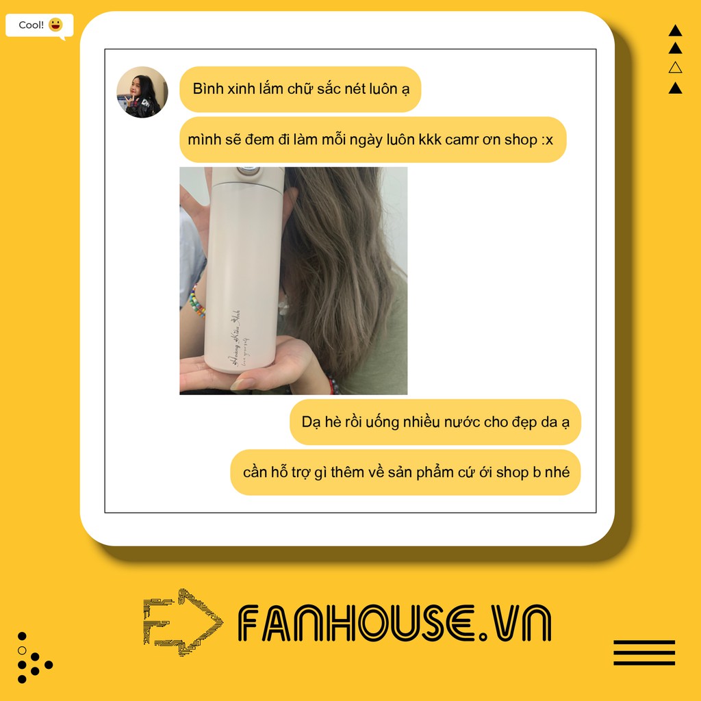 Nhà cửa & Đời sống > Bộ đồ bàn ăn > Bình nước & phụ kiện || Bình giữ nhiệt khắc tên FanHousely nước inox 304 nắp bật tiện lợi, bình văn phòng 420ml giữ nóng lạnh 12h tặng bộ rửaCòn hàng