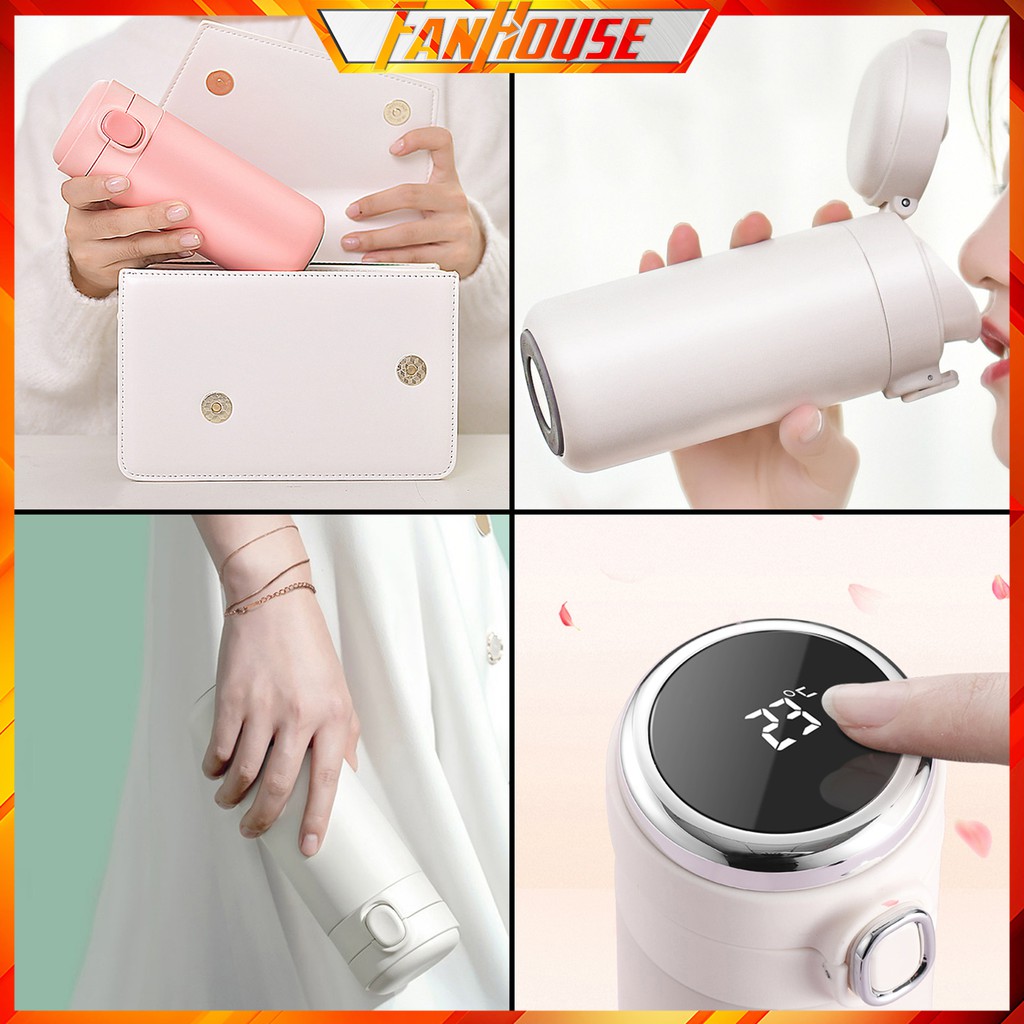 Giới thiệu Bình giữ nhiệt khắc tên FanHousely nước inox 304 nắp bật tiện lợi, bình văn phòng 420ml giữ nóng lạnh 12h tặng bộ rửa