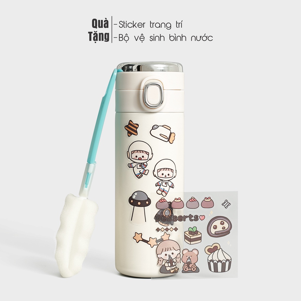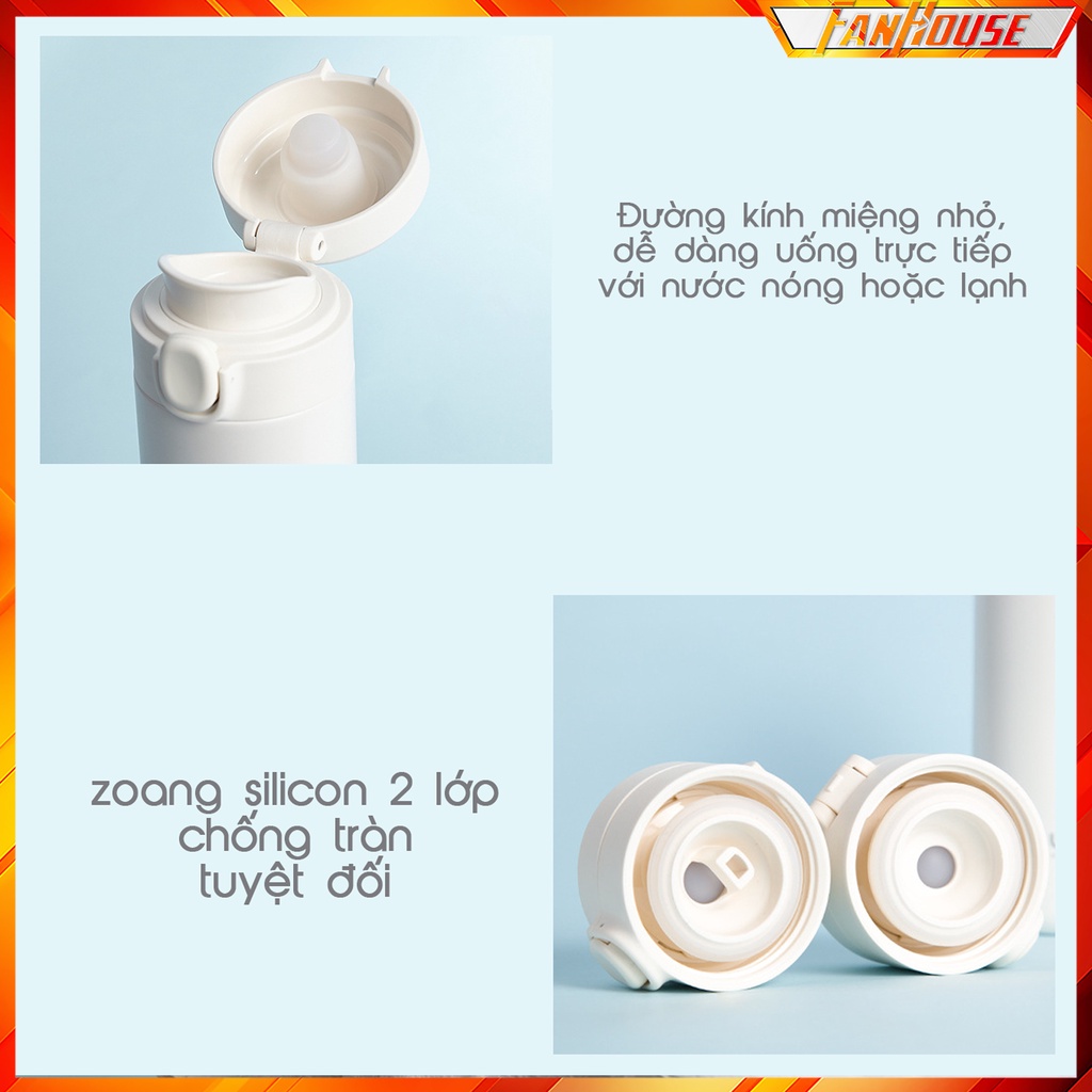 Bình giữ nhiệt khắc tên FanHousely nước inox 304 nắp bật tiện lợi, bình văn phòng 420ml giữ nóng lạnh 12h tặng bộ rửa