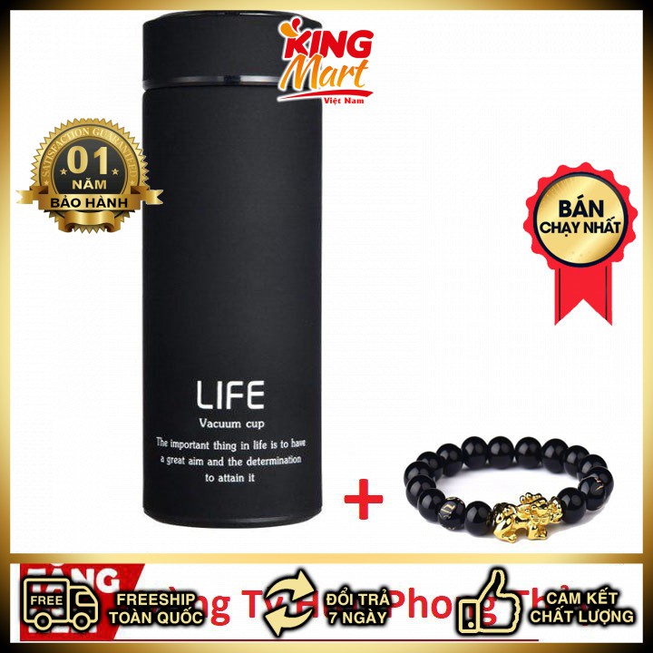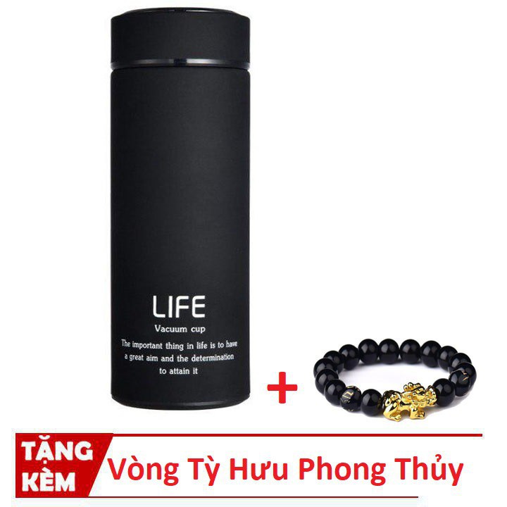 Bình giữ nhiệt LIFE inox 500ml cao cấp tặng kèm vòng tỳ hưu phong thủy(freeship)