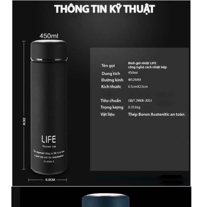 Bình giữ nhiệt cao cấp LifeBÌnh giữ nhiệt cao cấp 3 lớp có thiết kế rất đẹp, bắt mắt cùng với chất lượng cao cấp. Với dung tích 500ml, bìnhphù hợp mang đi tập thể dục, đi học, đi làm, cho các chuyến dã ngoại, picnic mà không sợ cồng kềnh, dễ dàng cho vào balo hoặc túi xách.