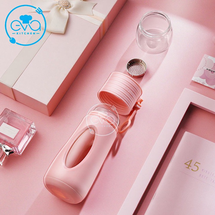 - Công Dụng : Bình đựng nước thủy tinh được làm từ chất liệu thủy tinh dày đẹp, . Kiểu dáng thon gọn trong lòng bàn tay, nắp đậy chống tràn khi để nghiêng, Với vỏ bọc nhựa an toàn chống nóng , độ bâm chắc chắn và cách nhiệt . bạn không phải lo ngại bị nóng hoặc bị lạnh tay .tiện dụng mang đi khắp mọi nơi . bình có lưới lọc giúp lọc trà dễ dàng . và có thể pha ngược trà giúp loại bỏ vị đắng khi pha . Rất phù hợp khi pha tra mang ra ngoài và cho các loại thức uống: nước detox, nước ép, trà sữa… hoặc các loại thực phẩm khác.Cũng phù hợp thiết kế đồ trang trí, đựng đồ lưu niệm, làm quà tặng…