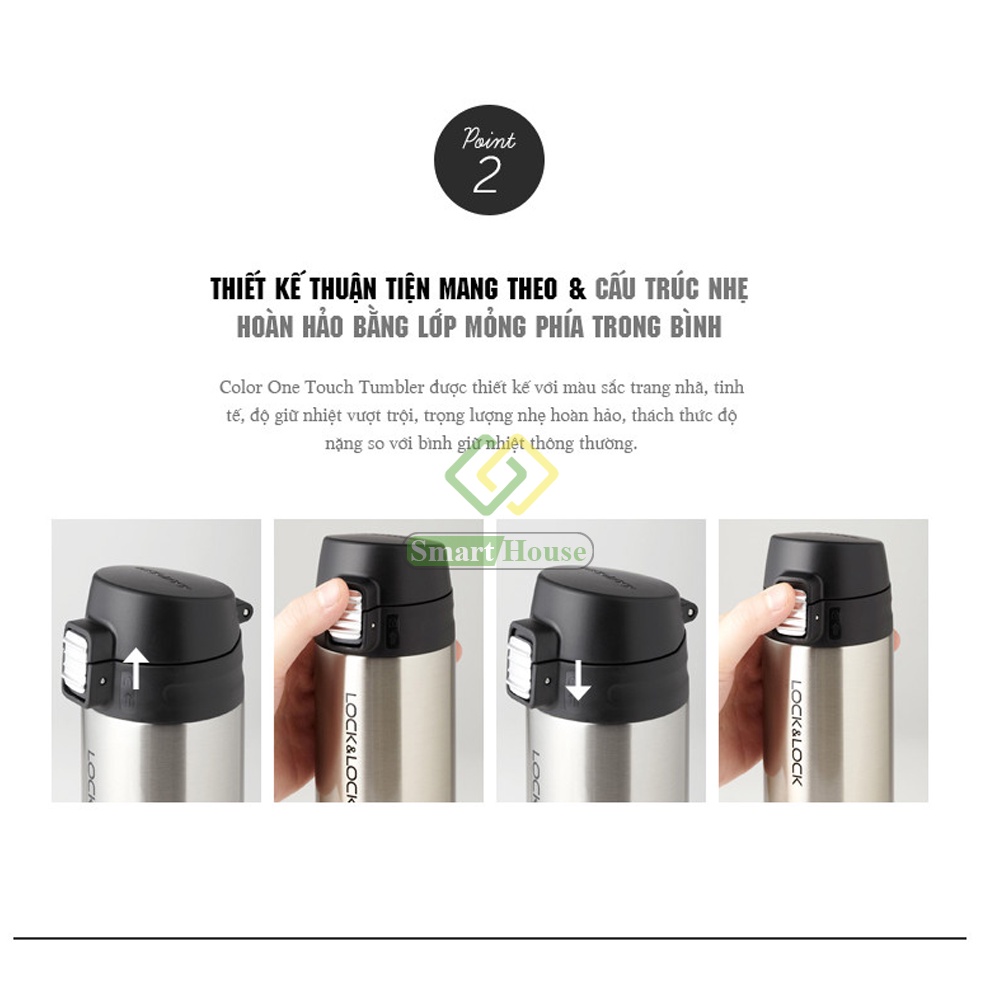 Bình Giữ Nhiệt Lock&Lock 330ml Thép Không Gỉ Nút Bật One Touch - Smart House