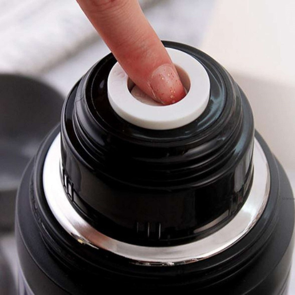 - Miệng bình làm bằng silicone cao cấp tạo sự kín khí, giúp điều chỉnh nhiệt độ ổn định. Ngoài ra nó còn giúp cho phích không bị rò rỉ và vương vãi hơi nước ra bên ngoài. Phía trên gioăng là phần nút mở thông minh, chỉ cần nhấn nhẹ là có thể rót nước nhanh mà không cần phải mở gioăng.
