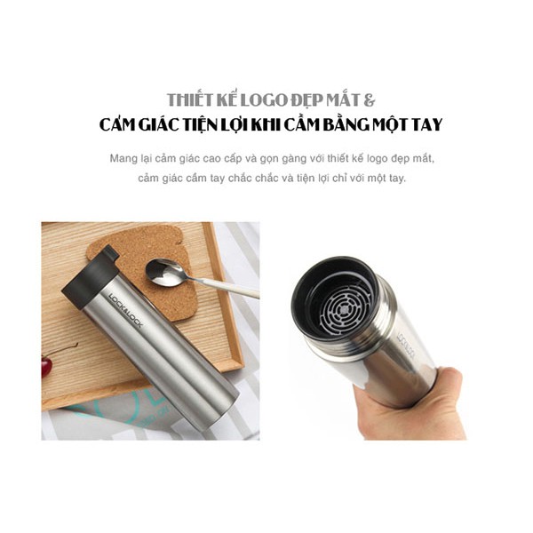 - Bình giữ nhiệt Lock&Lock Knob tumbler LHC4121 có đường nét gọn gàng, tay cầm chắc chắn tiện lợi, an toàn khi mở/đóng với lắp vặn, thân bình được làm từ chất liệu Stainless Steel 304, nắp và bộ lọc được làm từ chất liệu Polypropylen (PP), phần nắp được làm từ chất liệu cao su (Silicon).