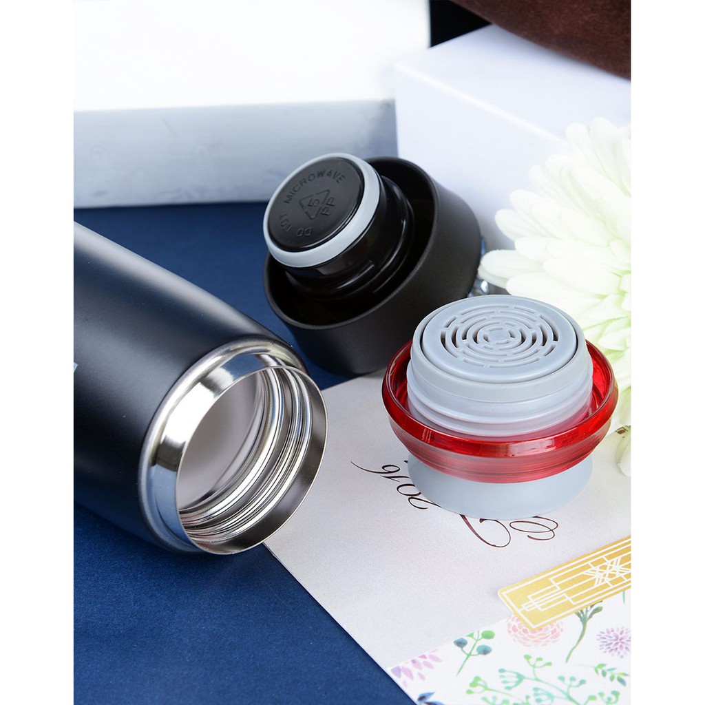 5. Bình có lọc trà, bạn có thể cho trà lá hoặc trà túi lọc vào để sử dụng rất tiện lợi. Hơn nữa khi uống nước, nhờ có lọc trà, nước không bị đổ ào ra ngoài bất ngờ khi bạn lỡ tay nâng bình lên cao. Nắp và lọc trà có thể tháo rời, dễ dàng làm sạch, giúp bạn luôn sử dụng sản phẩm trong tình trạng sạch sẽ, hợp vệ sinh.