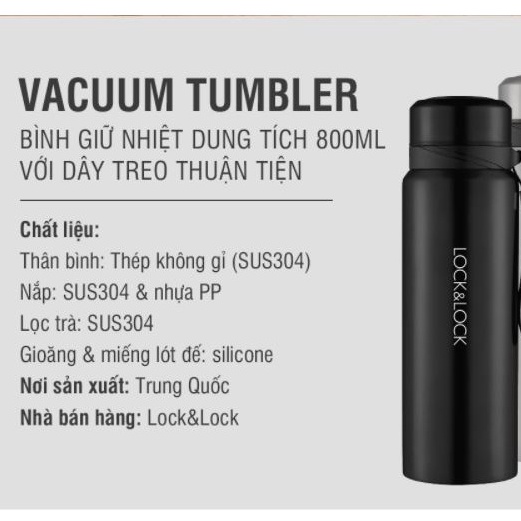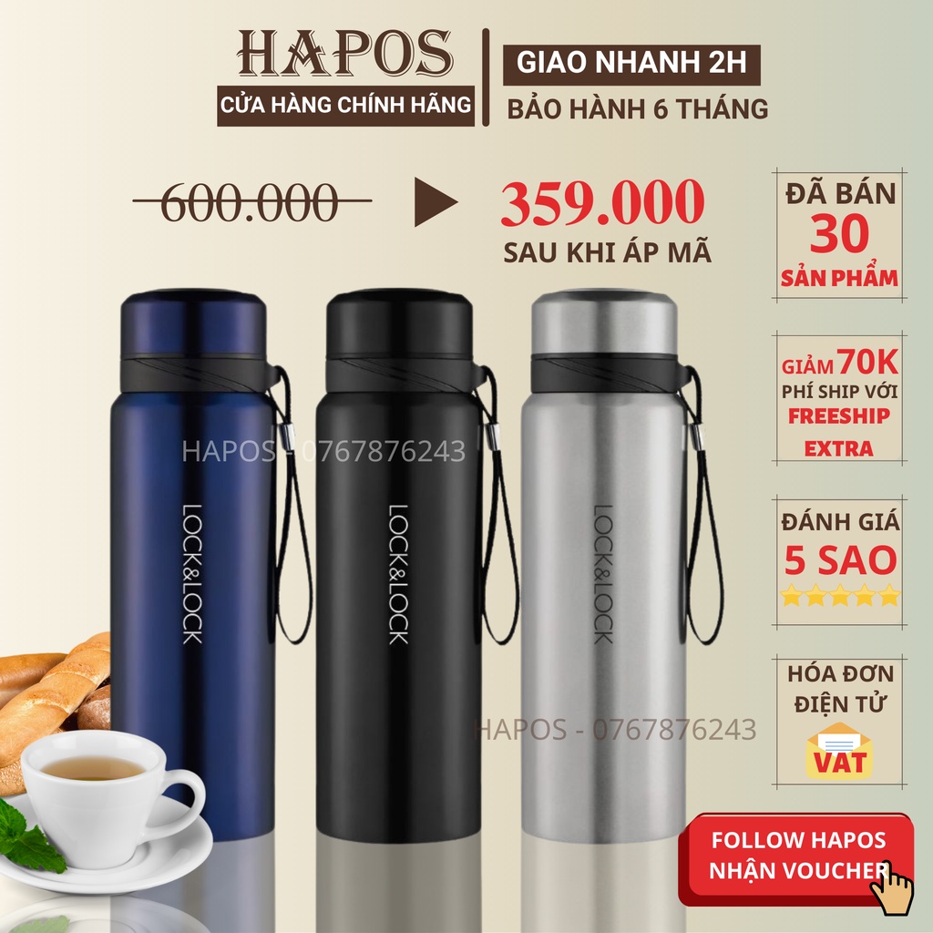 Giới thiệu Bình giữ nhiệt Lock&Lock LHC6180FU 800ml - Bình đựng nước giữ nhiệt thép không gỉ cao cấp Tặng túi vải - HAPOS