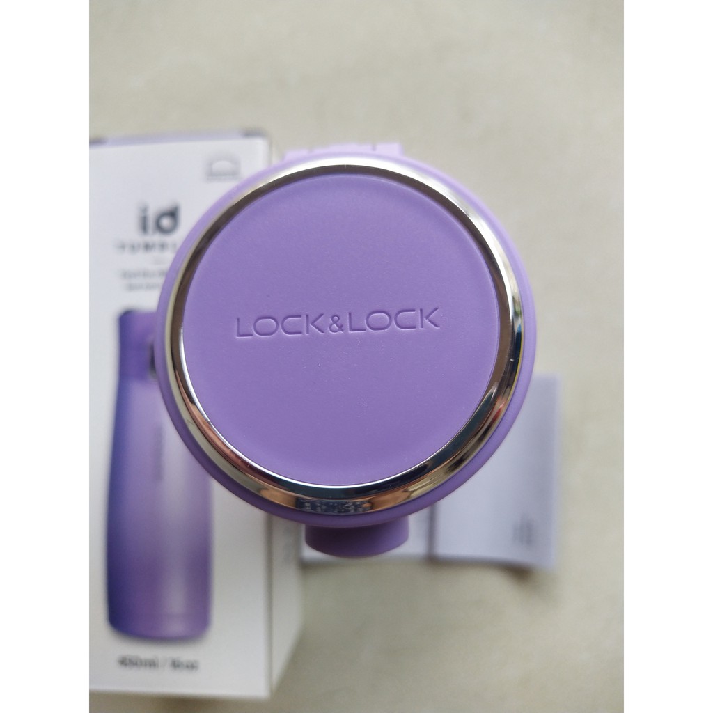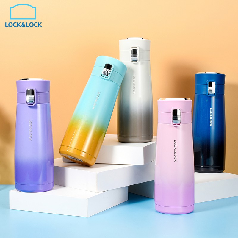 - Bình Giữ Nhiệt Holiday Sunset I.d Tumbler Lock&Lock LHC3245 450ml mở nắp bằng một cái chạm tay.