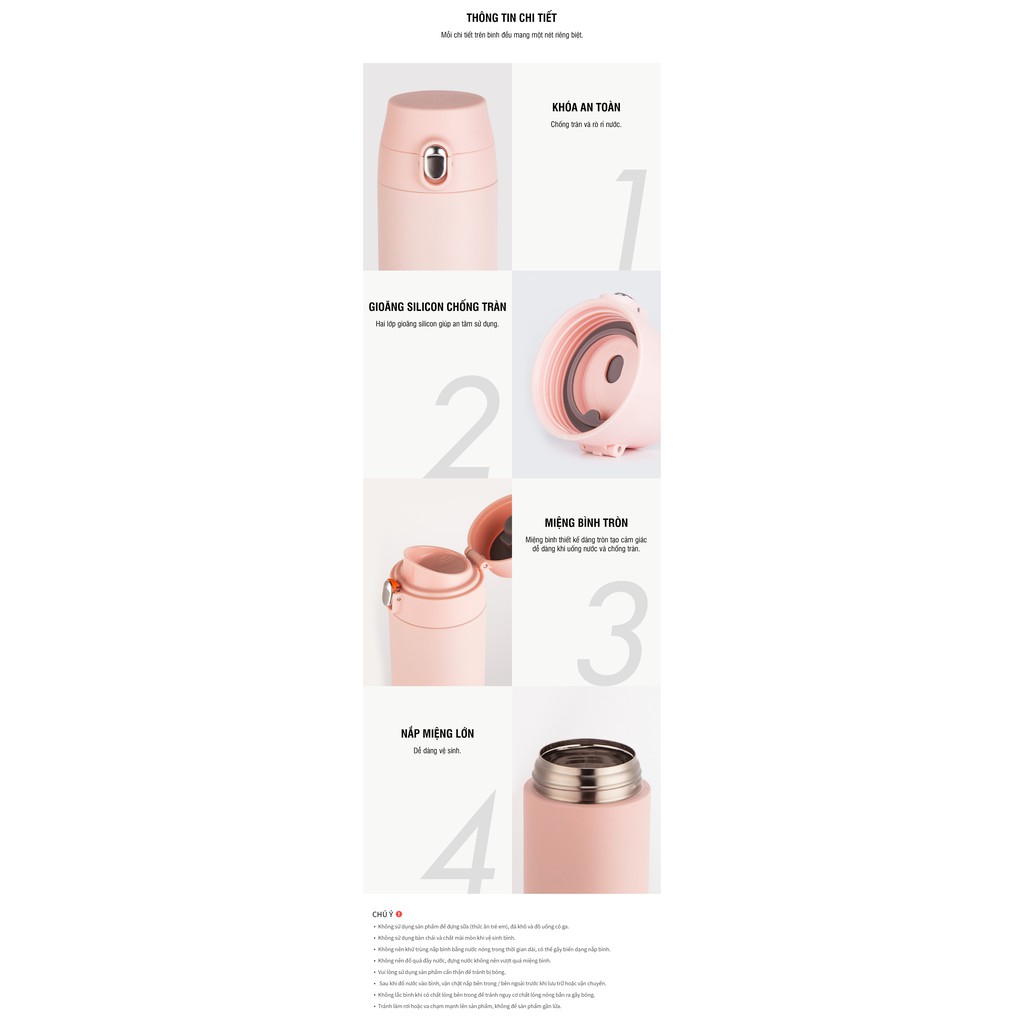 - Bình giữ nhiệt mỏng nhẹ tạo cảm giác dễ dàng trong di chuyển và mang theo khắp nơi.