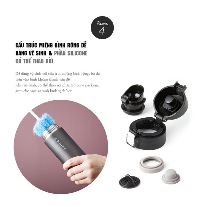 Khi rửa bình, có thể tháo rời phần silicone packing, giúp cho việc vệ sinh bình sạch hơn.