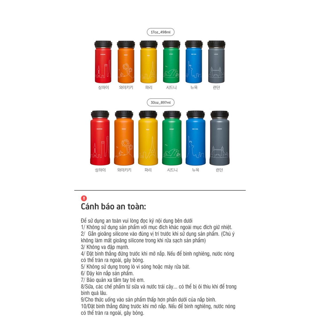 Tumbler có 6 màu sắc sinh động kèm hình ảnh tượng trưng của mỗi thành phố, bạn có thể thoải mái lựa chọn màu sắc và họa tiết phù hợp với sở thích của bạn.