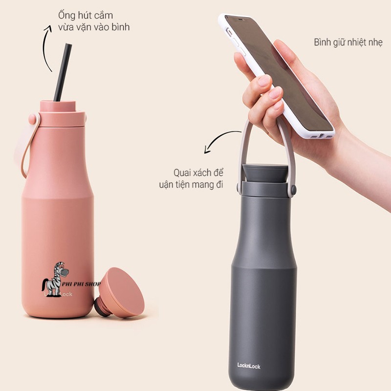 Giới thiệu Bình giữ nhiệt LocknLock Metro Double Tumbler dung tích 470ml có quai xách tiện lợi LHC4202